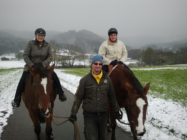 Gemeinsamer Ausritt im Schnee - als Handicap-Reiter in Begleitung sicher ausreiten